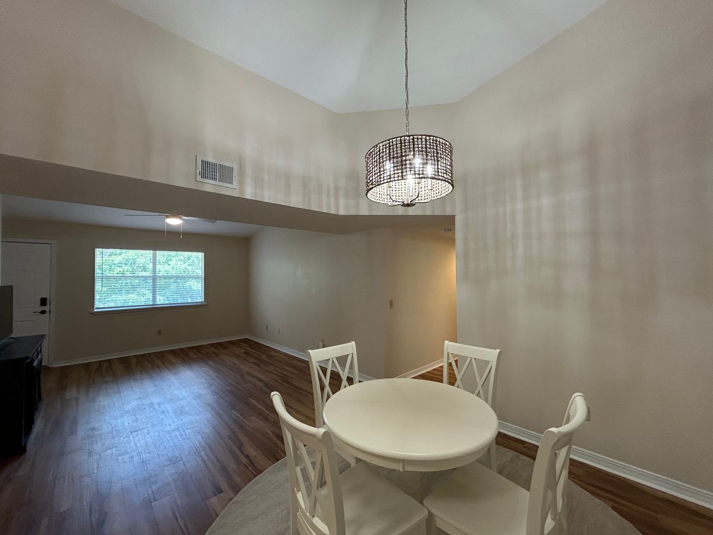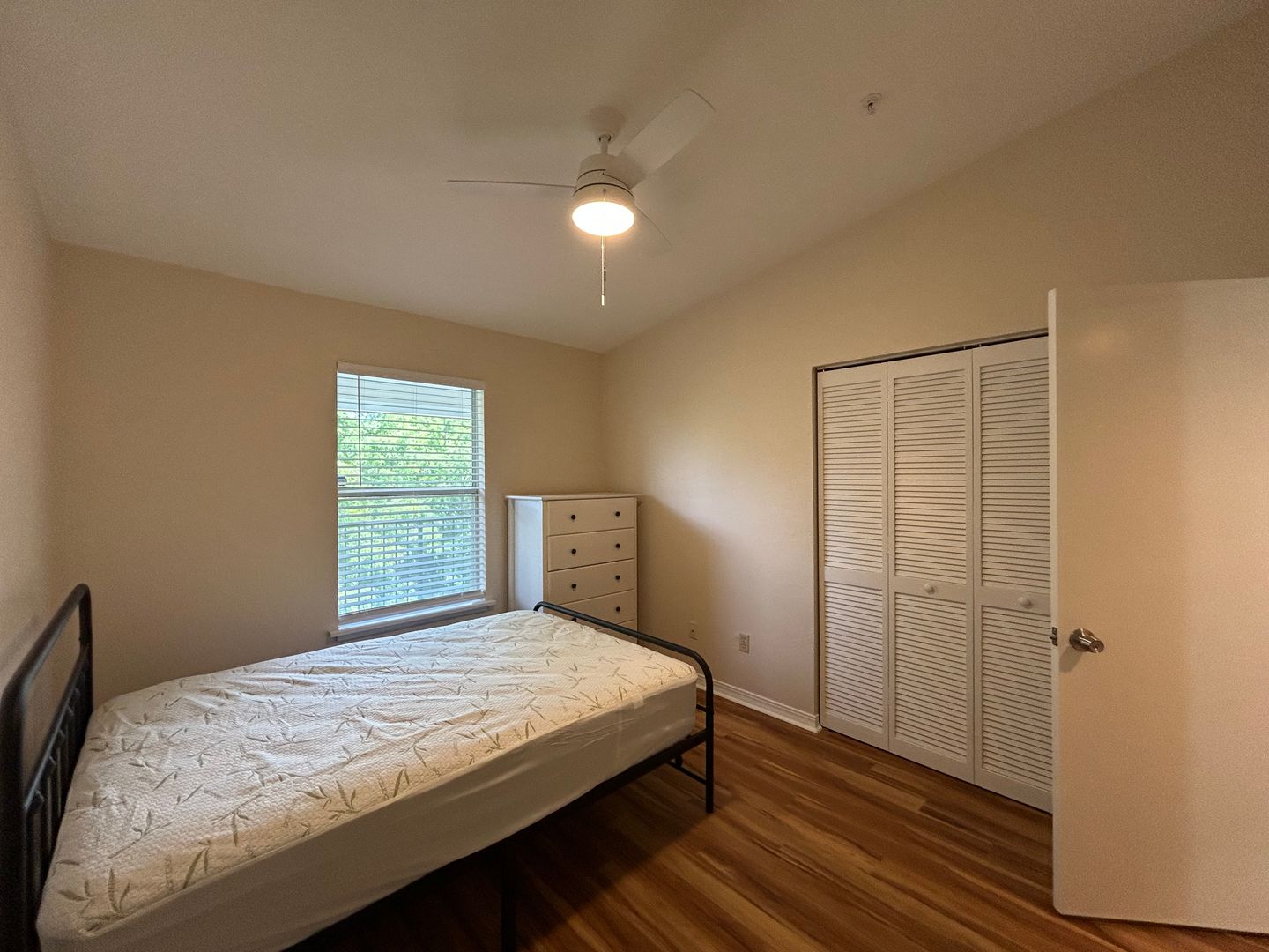 This third floor, vaulted ceiling, three bedroom, two bathroom has a large, private window view for each bedroom. Your room will overlook a small pond with grass, trees, and wading birds. This magical setting is a truly unique find so close to campus.