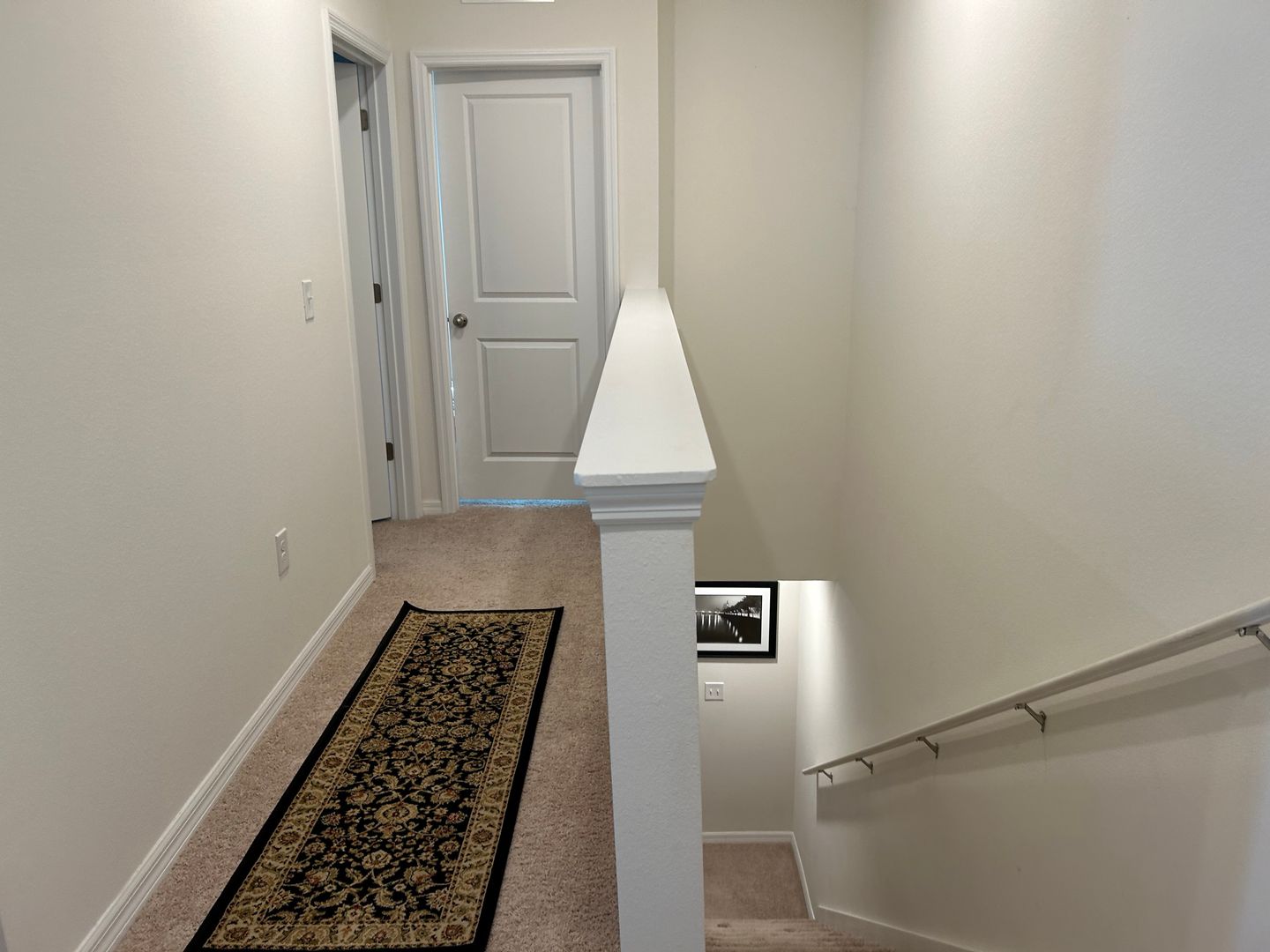 Upstairs, the primary suite offers a private bath and two walk-in closets. Two additional bedrooms share a Jack-and-Jill bath, and the upstairs landing provides flexible space for a sitting area or home office.