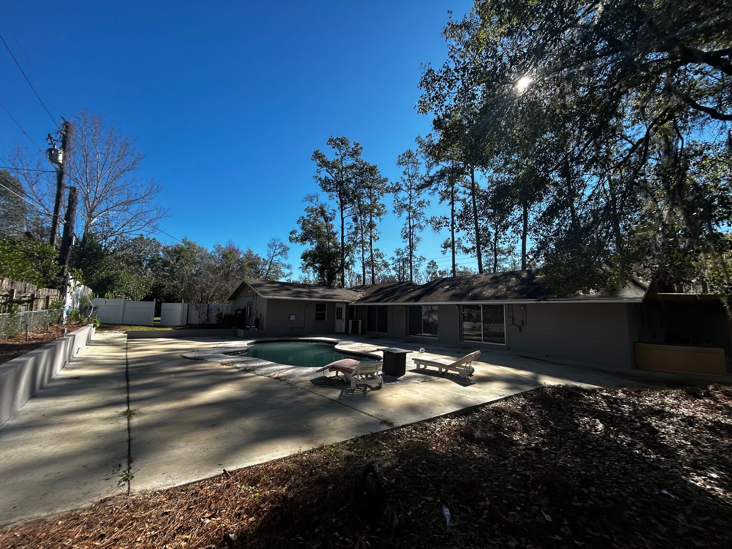 Private Pool & Fenced Yard: The property boasts a private in-ground pool and a fully fenced-in backyard for added privacy. Many rooms have direct access with floor to ceiling glass windows to enjoy the natural light. Pool maintenance is included with the rent.